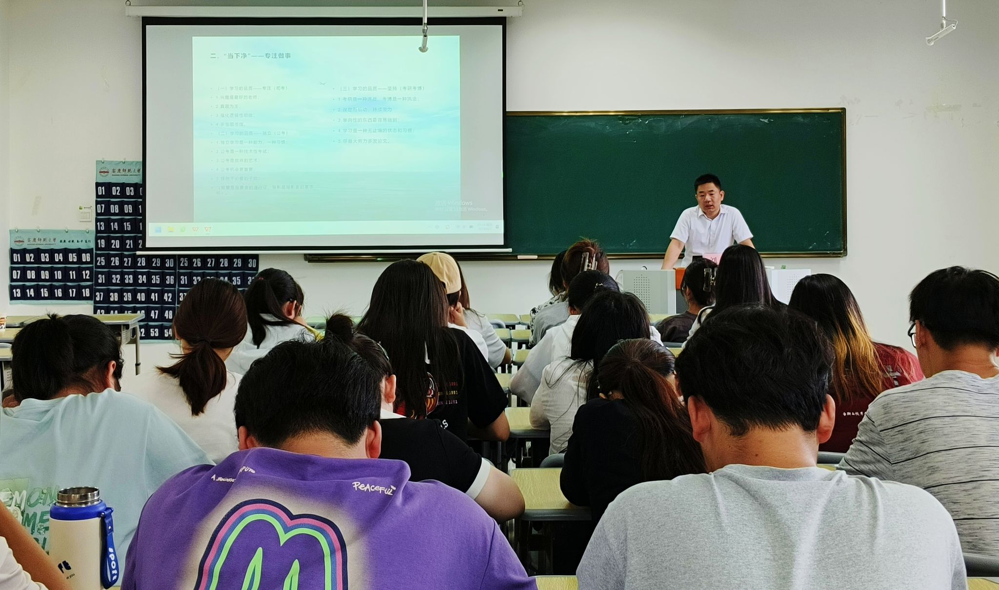 会上,刘勋结合自己大学时代读书方式分享了“为什么读书”“如何读书”的经验,并对考公、考研等毕业方向的选择给出指导,并希望大家不惧“起点低 ”,拥有“当下净 ”的心,从容笑看“回头脏”,修一个“平常道”。活动中,同学们积极与刘勋进行互动,现场气氛十分活跃。