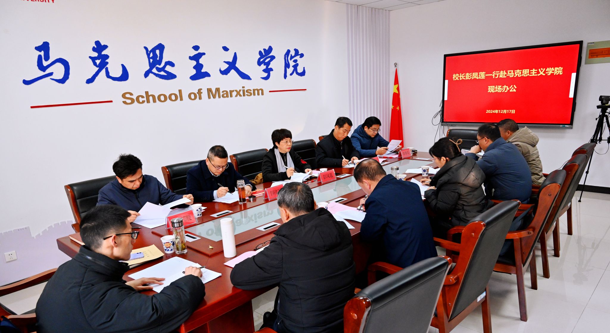 彭凤莲强调,要始终坚持以习近平新时代中国特色社会主义思想为指导,学深悟透习近平总书记对新时代马克思主义理论研究和建设工程作出的重要指示精神,坚持正确政治方向,把准学科定位,充分发挥马克思主义理论学科引领作用;要全面对标《普通高等公司太阳成tyc122cc建设标准(2023年版)》,加强统筹规划和谋篇布局,整合各方资源,形成合力建设太阳成tyc122cc;要注重引培相结合,在建设高水平的团队队伍的同时,着力加强对青年教师的培养和指导,夯实公司可持续发展的人才基础;要坚持问题导向,主动担当,积极作为,立足公司发展大局,引领形成干事创业的强大合力,不断为推动公司可持续、高质量发展贡献力量。