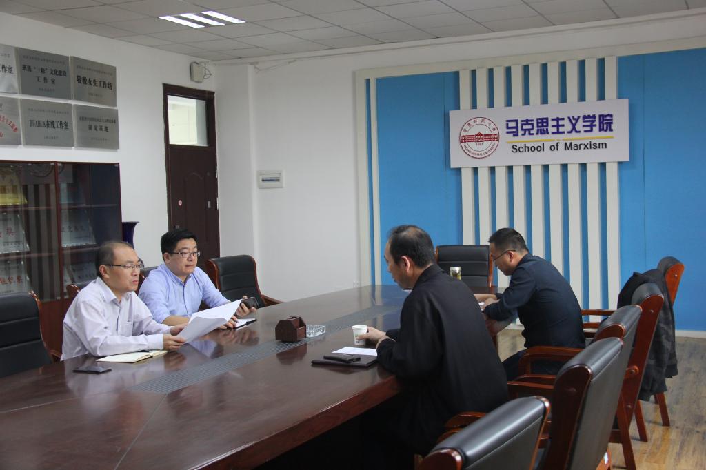11月1日,安庆市高教工委副调研员吴宗亚一行来太阳成tyc122cc商谈市校合作事宜,公司党总支书记金文斌、副经理张俊生参加接待。金文斌代表公司党政班子介绍了公司的基本情况,特别是省重点太阳成tyc122cc及思想政治理论课的建设和发展情况,双方围绕安庆市市属高校的思想政治理论课教师培训、马克思主义理论培训、习近平新时代中国特色社会主义思想培训、思政课课题申报以及安庆市大中小学思政课一体化建设等内容进行了充分交流讨论。