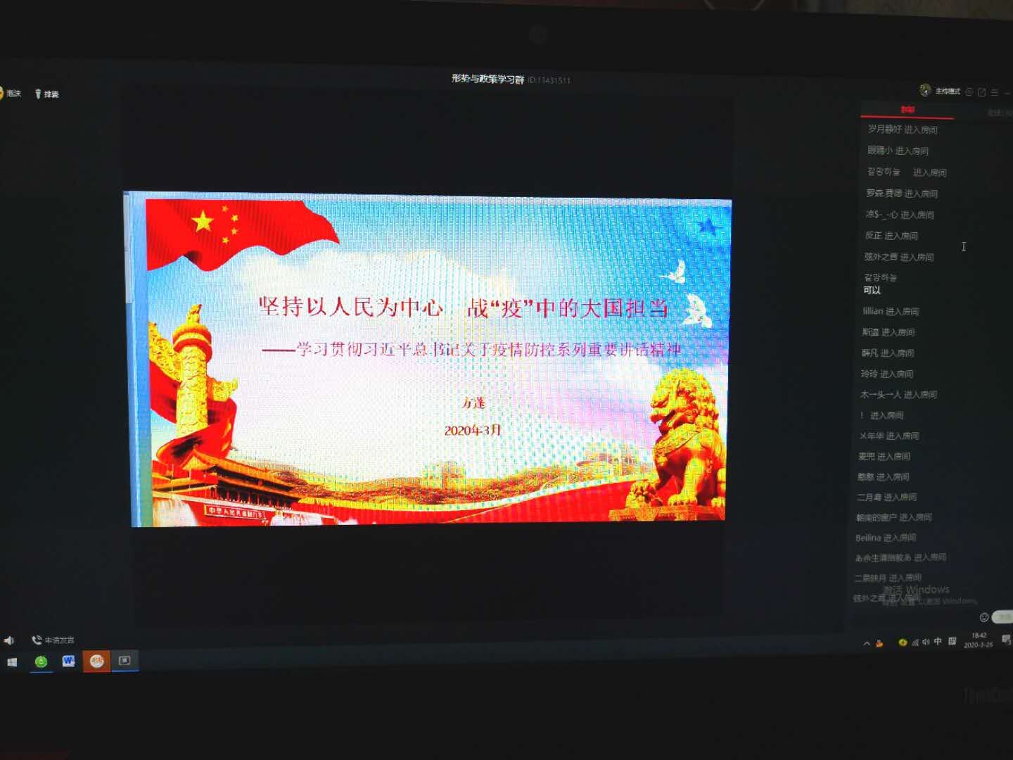 3月26日晚上,太阳成tyc122cc举办第三期公开示范课。方蓬老师以“坚持以人民中心 战‘疫’中的大国担当——学习贯彻习近平总书记关于疫情防控工作的重要讲话精神”为主题,开展线上教学公开示范课。董事长闵永新亲临线上观摩指导,全校近百名教师在线观摩。