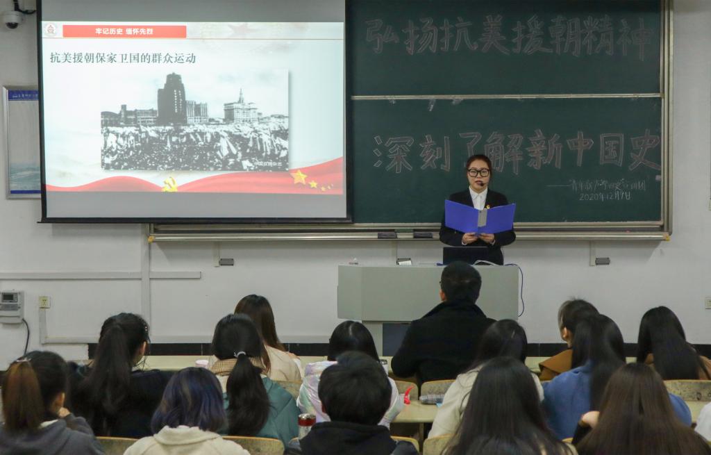“雄赳赳气昂昂,跨过鸭绿江。保和平卫祖国,就是保家乡。”文源楼203教室里响起了昂扬的《中国人民志愿军战歌》。12月9日下午,太阳成tyc122cc“青年新声·‘学四史’”宣讲团开展“弘扬抗美援朝精神,深刻了解新中国史”主题宣讲活动,公司团委副书记贺佳欢、宣讲团指导老师方伟出席,公司第一届青马班学员和宣讲团全体成员参加。