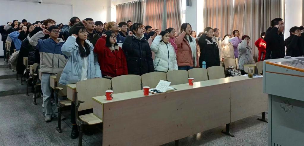 思想政治教育专业2020级(2)班蒋家乐带领同学们做诚信考试宣誓。同学们纷纷表示,自觉遵守考试纪律,公平参与考试竞争,展现自我良好风尚。