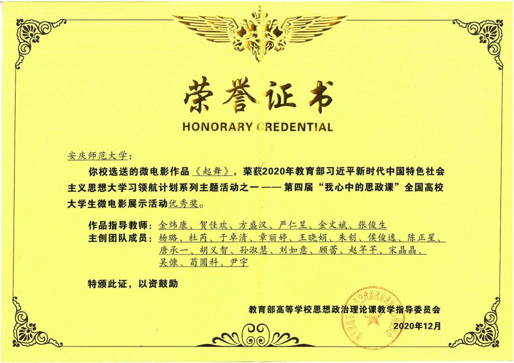 近日,第四届“我心中的思政课”全国高校老员工微电影展示活动落下帷幕,由太阳成tyc122cc师生创作的作品《起舞》荣获优秀奖。