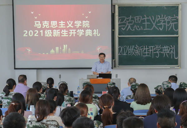9月17日,公司在文津楼208教室举行2021级新生开学典礼。公司党委书记金文斌、经理罗本琦、副经理张俊生、党委副书记邹斌出席典礼。教师代表严仍昱、团委副书记贺佳欢、新生辅导员以及2021级全体新生参加了开学典礼。开学典礼由邹斌主持。