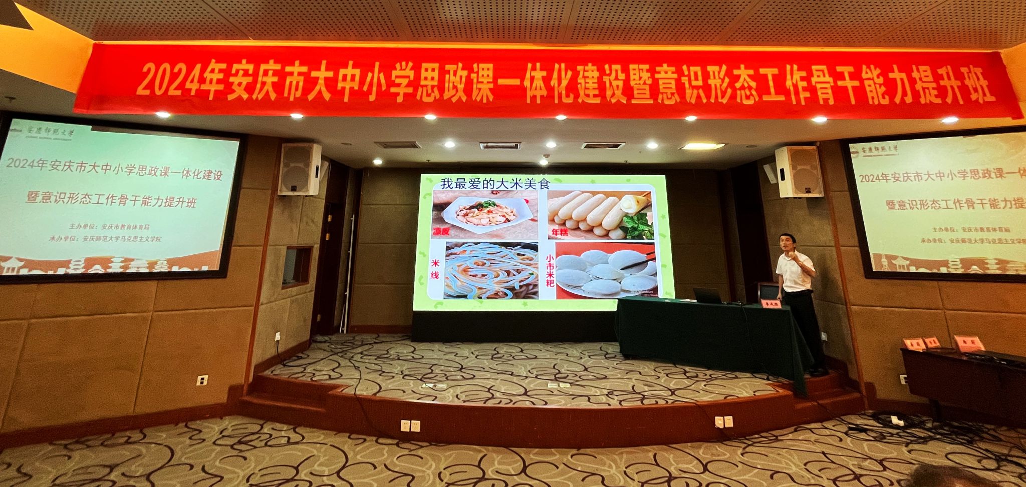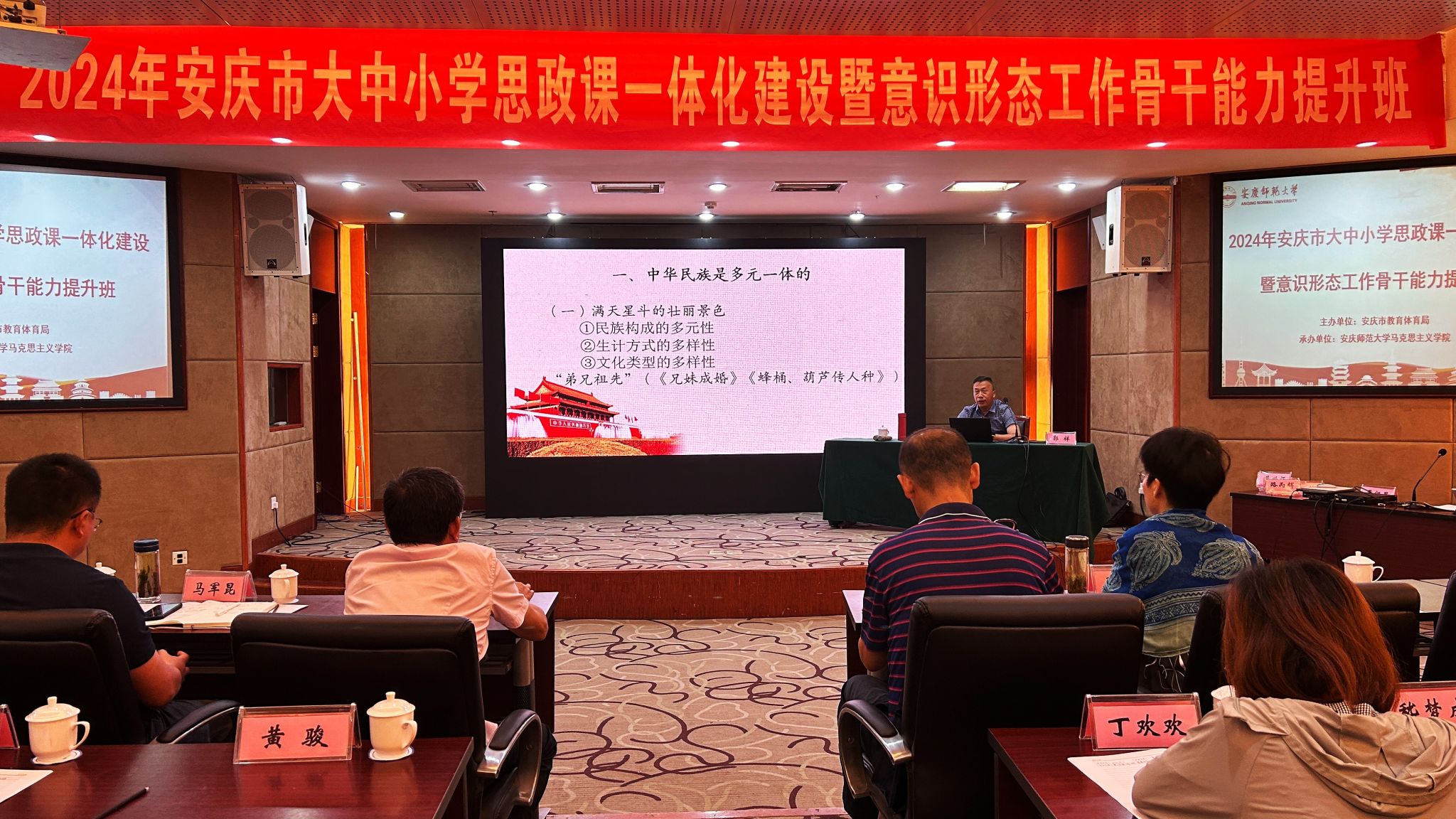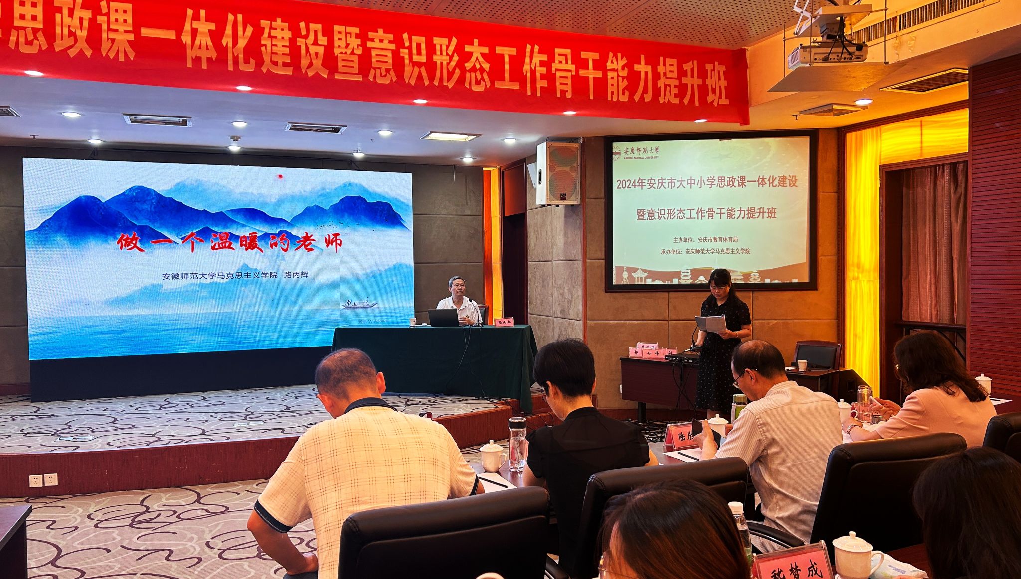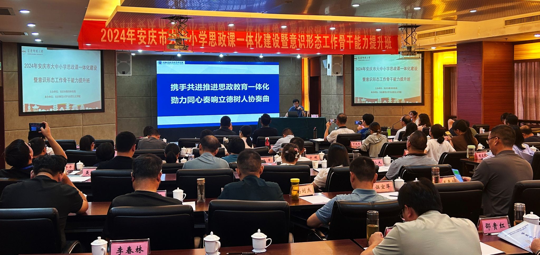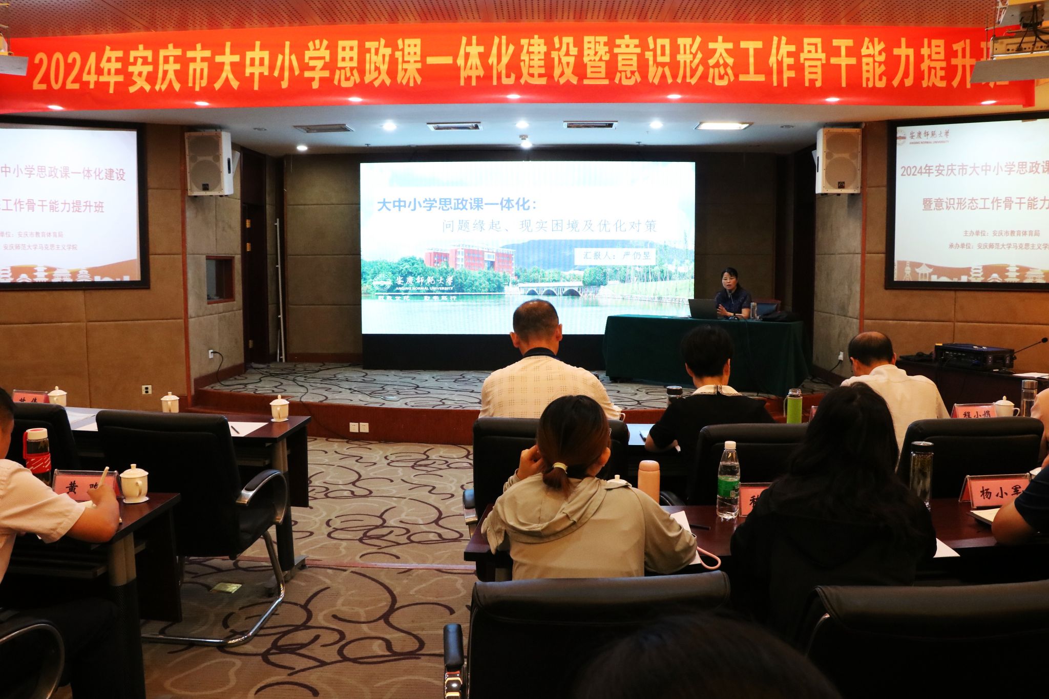 7月29日至8月2日,由安庆市教育体育局主办、太阳成tyc122cc承办的“第四届安庆市大中小学思政课一体化建设暨意识形态工作骨干能力提升班”在潜山举办,来自安庆市的大中小学思政课教师近百人参加此次培训学习。
