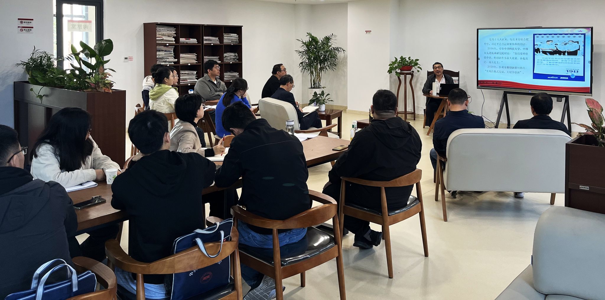 此次读书会由两部分内容组成。一是理论学习。公司副教授、硕士生导师黄海东围绕习近平总书记考察安徽重要讲话精神,从习近平总书记2024年安徽之行、习近平总书记考察安徽重要讲话精神的内涵要义和学习贯彻习近平总书记考察安徽重要讲话精神等方面进行了宣讲。二是原著导读。公司青年博士刘倬帆围绕《1844年经济学哲学手稿》,从马克思早期思想的发展过程、《1844年经济学哲学手稿》的特点和阅读要点、笔记本Ⅲ中的异化和异化意识批判等方面进行了深入浅出的讲解。