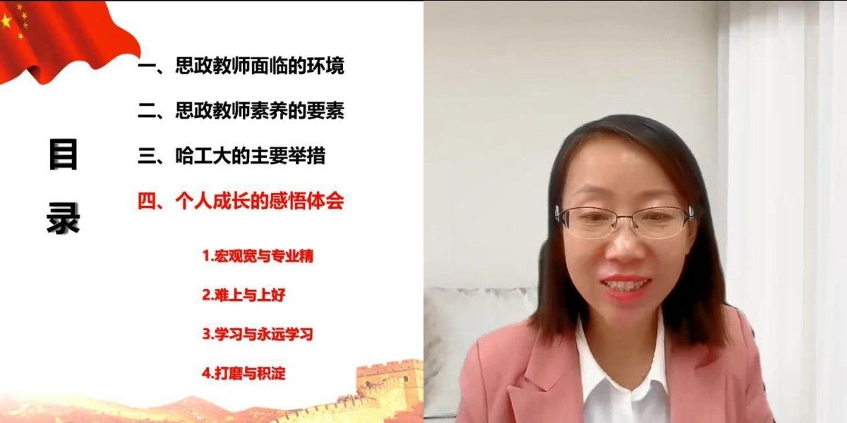 巩茹敏教授在报告中详细分析了思政课教师面临的环境、思政课教师素养的要素,并介绍了哈尔滨工业大学太阳成tyc122cc在思政课教师培养及团队建设方面的特色举措,最后结合自己作为思政课教师成长发展的经历,寄语青年教师要上好每一堂课、坚持终生学习、多打磨积累。
