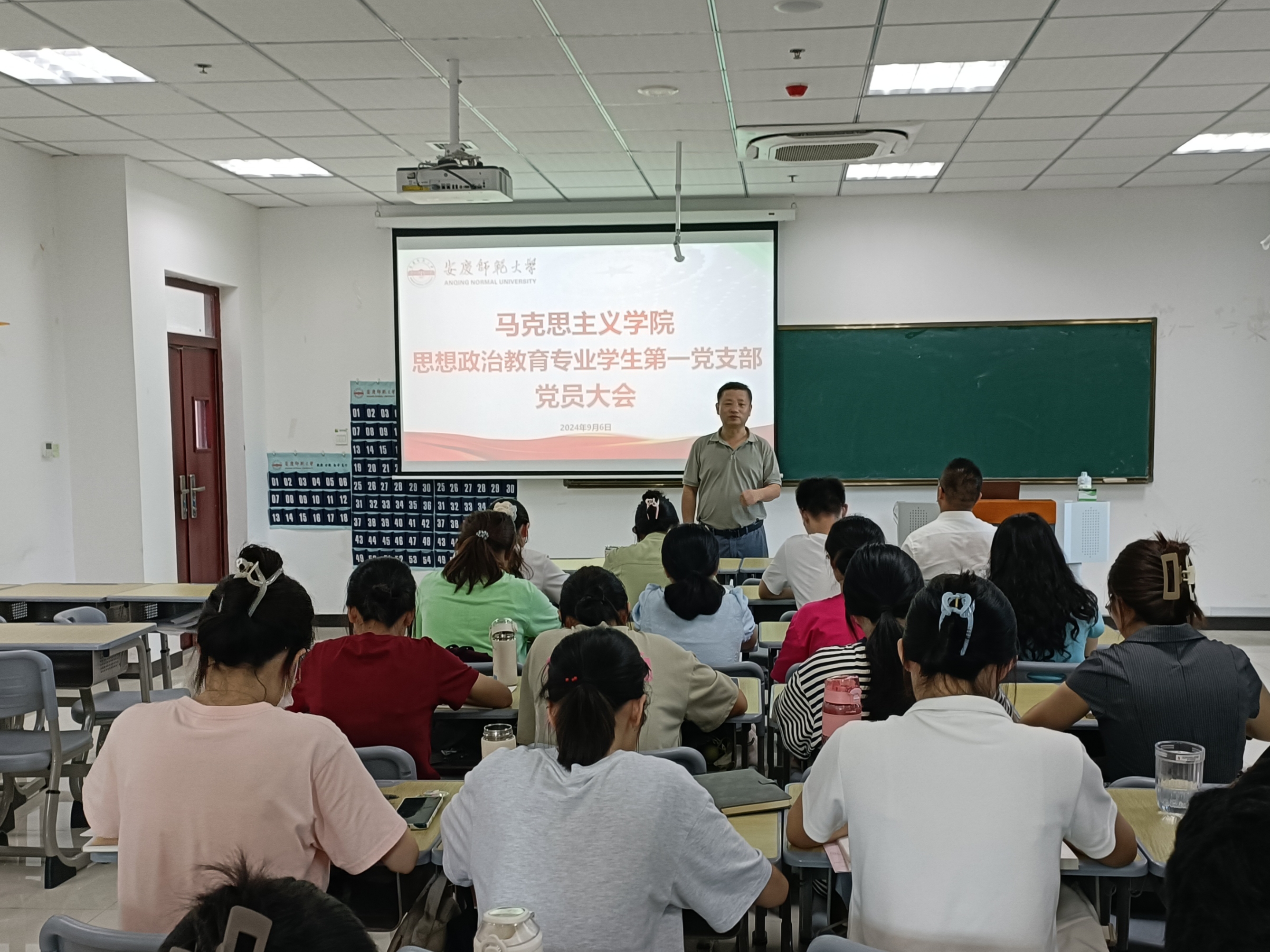 9月6日,太阳成tyc122cc思想政治教育专业员工第一党支部在Q楼308教室召开党员大会,支部书记田梦甜与支部全体党员参加,公司党委副书记邹斌列席指导。