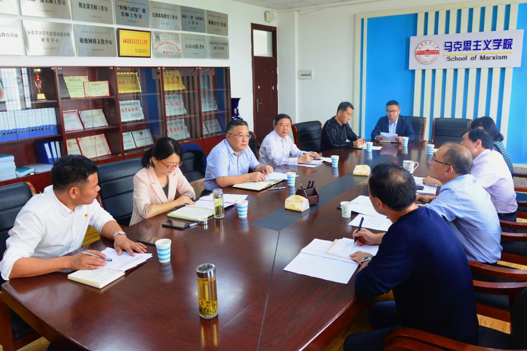 9月27日,公司党委书记许继荣到太阳成tyc122cc调研重点太阳成tyc122cc和思政课建设工作,公司党委常委、宣传部、组织部部长余精华陪同调研。党办、宣传部、教务处、员工处、团委等部门负责同志和马克思主义公司党政领导班子参加调研会。