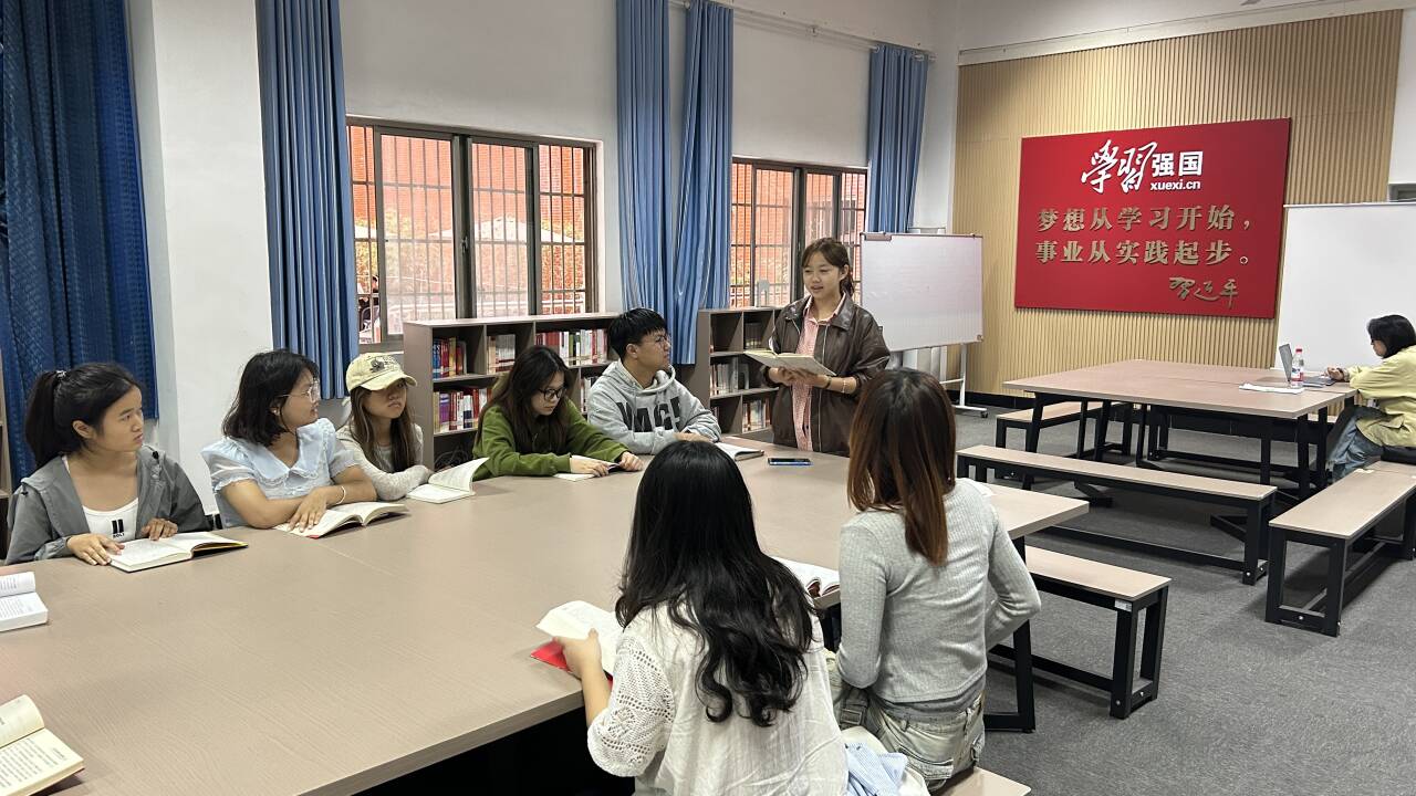 在老师的带领下,与会同学先后分享了多本经典书籍,支部党员、思想政治教育专业2023级延乔班的缪静怡分享了《习近平的七年知青岁月》中的多个生动事例。她表示,要从中学习不怕苦不怕累的干劲、爱读书善学习的学风、爱思考敢创新的闯劲,要做一名多学习、勤实践的新时代老员工。思想政治教育专业2024级(2)班张晓娴,以《平语近人:习近平总书记用典》中“把群众工作做细、做深、做实”这句话为切入点,分享了自己的感悟。她认为,这句话启示自己在日常学习和生活中要严格要求自己,做事要善始善终。