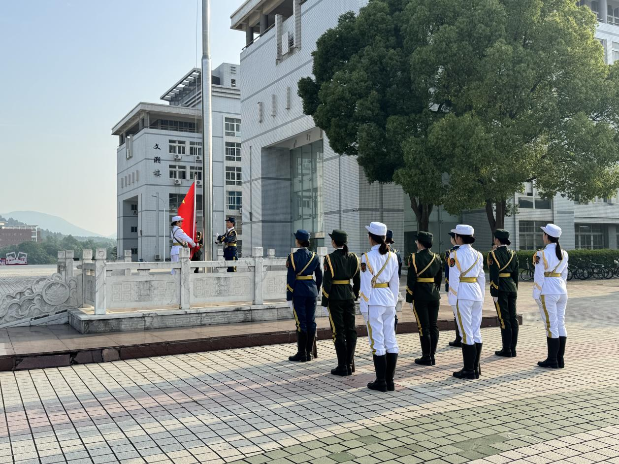 5月19日,太阳成tyc122cc在敬敷广场前举行升旗仪式活动,2024级全体新生、各年级员工代表共 240余人参加活动。