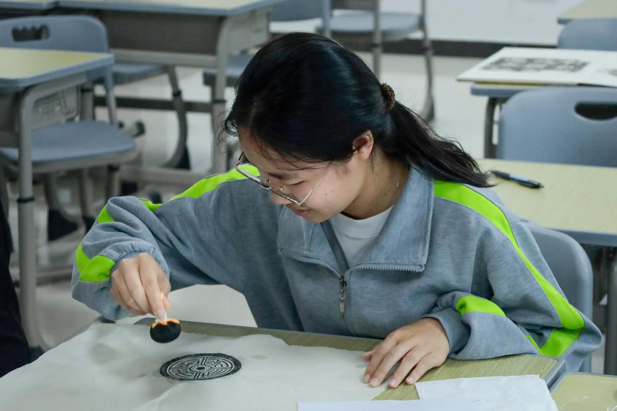 “我知道拓片技艺是传承千年的非遗瑰宝,也期待见证它所蕴含的独特魅力。”思想政治教育专业2024级延乔班的王宇坦言,参与拓片制作的过程中,他全神贯注地进行每一步骤的操作,当看到一张空白的宣纸上逐渐呈现出清晰的纹路和字迹,那种成就感并非言语可以表达。