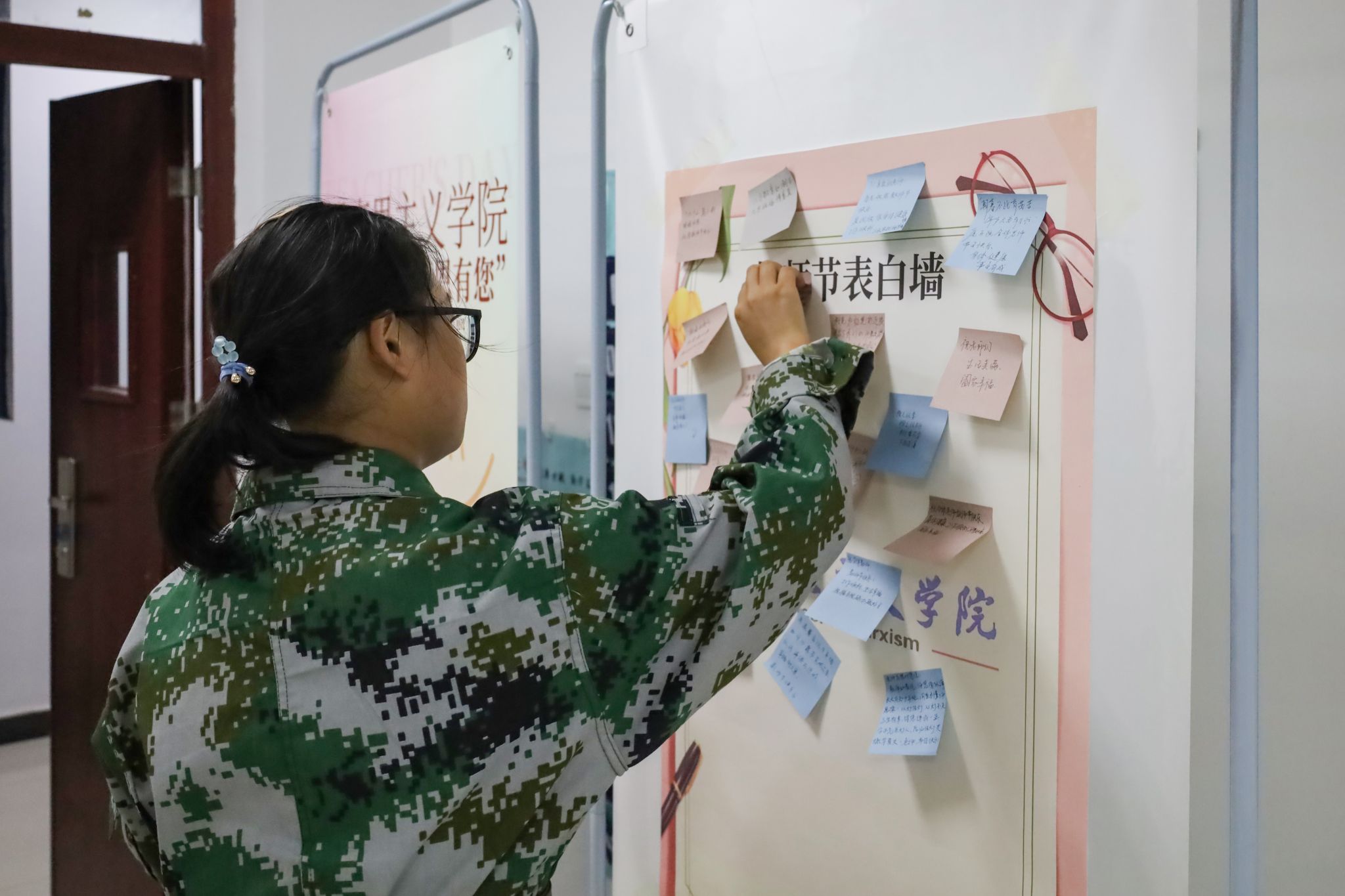 筹划活动、购买材料、选择场地,据活动负责人、思想政治教育专业2022级(1)班的林晓蕾介绍,为了迎接教师节的到来,他们于一周前便着手筹备此次活动。待活动结束后,工作人员会将员工们亲手制作的手工花与明信片一并送给公司教师。“与往届不同的是,我们在节日寄语上增加了DIY花束环节,使活动的形式更加新颖化。”林晓蕾说。