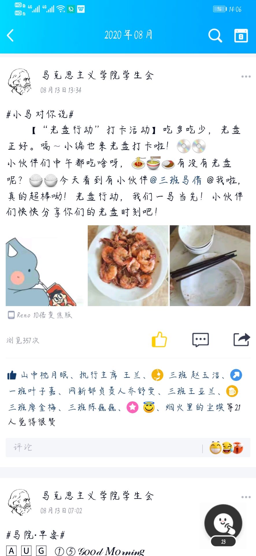 为了让更多的员工了解“光盘行动”、支持“光盘行动”和参与“光盘行动”,积极响应习近平总书记制止餐饮浪费行为的重要指示精神,公司团委组织开展线上推文学习和打卡活动。公司倡导同学们认真学习《人民日报》上刊登的《习近平:坚决制止餐饮浪费行为》内容,同时鼓励大家就“光盘行动”、“餐饮浪费”等内容进行交流探讨。同学们积极参与其中,思想政治教育专业2019级3班侯骏逸在参与讨论时说,我们应该将光盘行动常态化,光盘行动,文明就餐应当成为每个人的日常习惯。“近年来,餐饮浪费的现象层出不穷。制止餐饮浪费,培养节约习惯,是每一个公民应当肩负的责任。作为青年老员工,我们更应该从自身做起,勤俭节约,艰苦奋斗”,则是思想政治教育专业2019级1班黄雨格针对当今“餐饮浪费”的现象提出的观点。